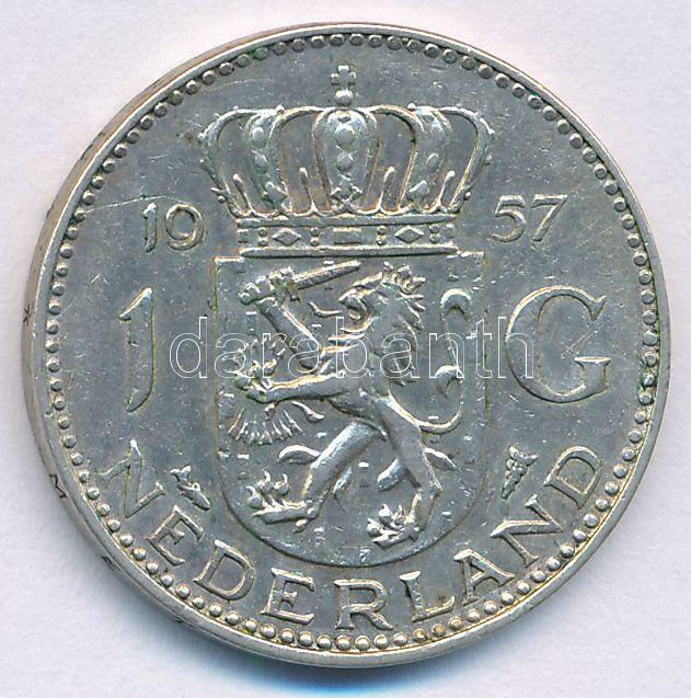 Netherlands 1957.... https://www.darabanth.com/hu/472-Gyorsarveres/472.0/Numizmatika/Kulfoldi-fem-es-ezustpenzek~2000017/Hollandia-1957-1G-Ag-I-Julianna-TXF--Netherlands-1957-1-Gulden-Ag-Juliana-CXF--Krause-KM23~II3181327