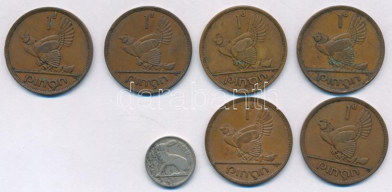 Leírás: Írország 1941-1949. 1p bronz (6db) + 1942. 3p Cu-Ni T:XF,VF