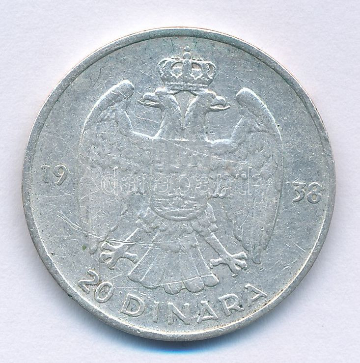 Yugoslavia 1938. ... https://www.darabanth.com/hu/472-Gyorsarveres/472.0/Numizmatika/Kulfoldi-fem-es-ezustpenzek~2000017/Jugoszlavia-1938-20D-Ag-II-Peter-TVF-Yugoslavia-1938-20-Dinara-Ag-Petar-II-CVF--Krause-~II3196142