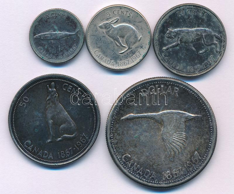 Kanada 1967. 5c Ni + 10c Ag + 25c Ag + 50c Ag + 1$ Ag "Jubileum 1867-1967" T:AU,XF patina