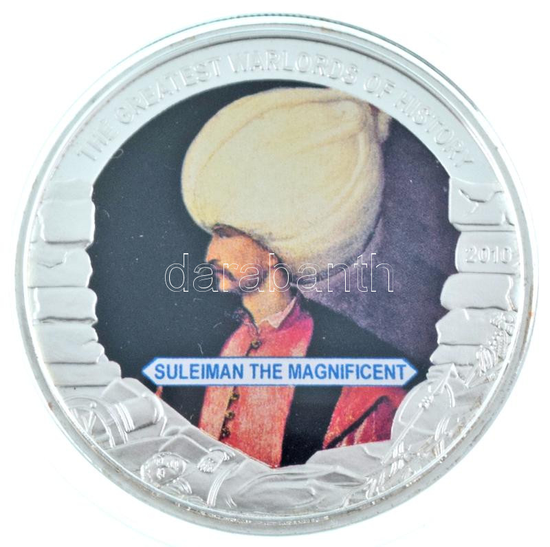 Libéria 2010. 5$ ezüstözött Cu "Nagy Hadvezérek - Nagy Szulejmán" multicolor festéssel, kapszulában T:PP Liberia 2010. 5 Dollars silvered Cu "The Greatest Warlords of History - Suleiman the Magnificent" with multicolor picture, in capsule C:PP