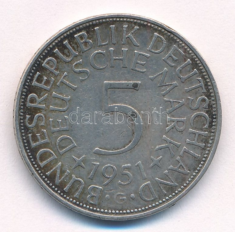 GFR 1951G 5 Mark Ag C:XF patina Krause ... https://www.darabanth.com/hu/472-Gyorsarveres/472.0/Numizmatika/Kulfoldi-fem-es-ezustpenzek~2000017/NSZK-1951G-5M-Ag-TXF-patina--GFR-1951G-5-Mark-Ag-CXF-patina-Krause-KM23112~II3028048