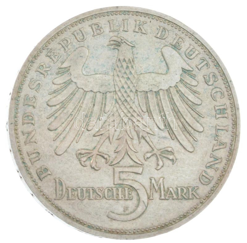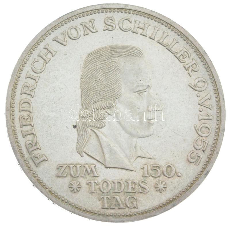 NSZK 1955F 5M Ag "Friedrich von Schiller halálának 150. évfordulója" T:AU patina, apró karc / FRG 1955F 5 Mark Ag "150th Anniversary of the Death of Friedrich von Schiller" C:AU patina, tiny scratch Krause KM#114