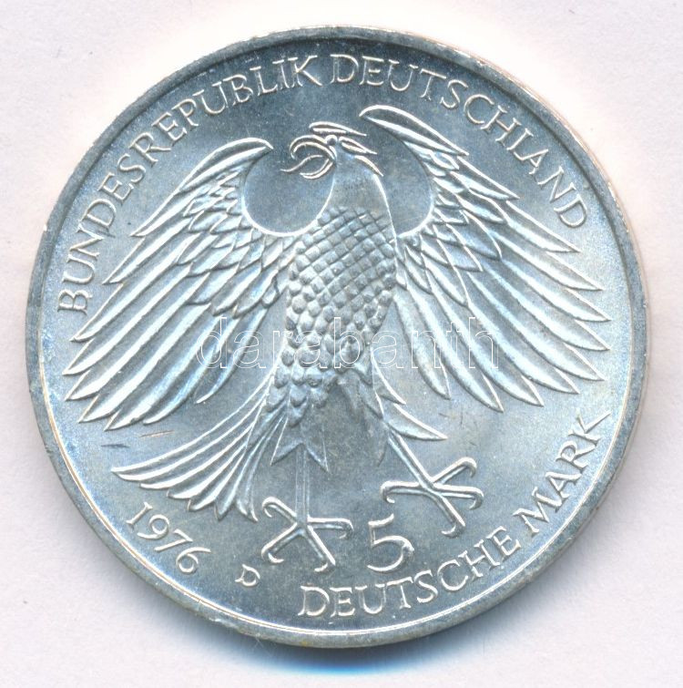 NSZK 1976D 5M Ag "Grimmelhausen halálának 300. évfordulója" kapszulában T:BU patina FRG 1976D 5 Mark Ag "300th Anniversary - Death of Grimmelhausen" in capsule C:BU patina Krause KM#144