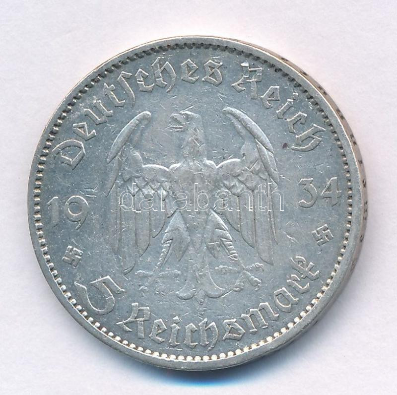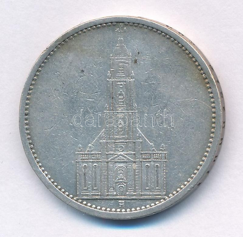 Német Harmadik Birodalom 1934A 5M Ag "Garnisonkirche" T:XF,VF patina German Third Reich 1934A 5 Reichsmark Ag "Garnisonkirche" C:XF,VF patina Krause KM#83