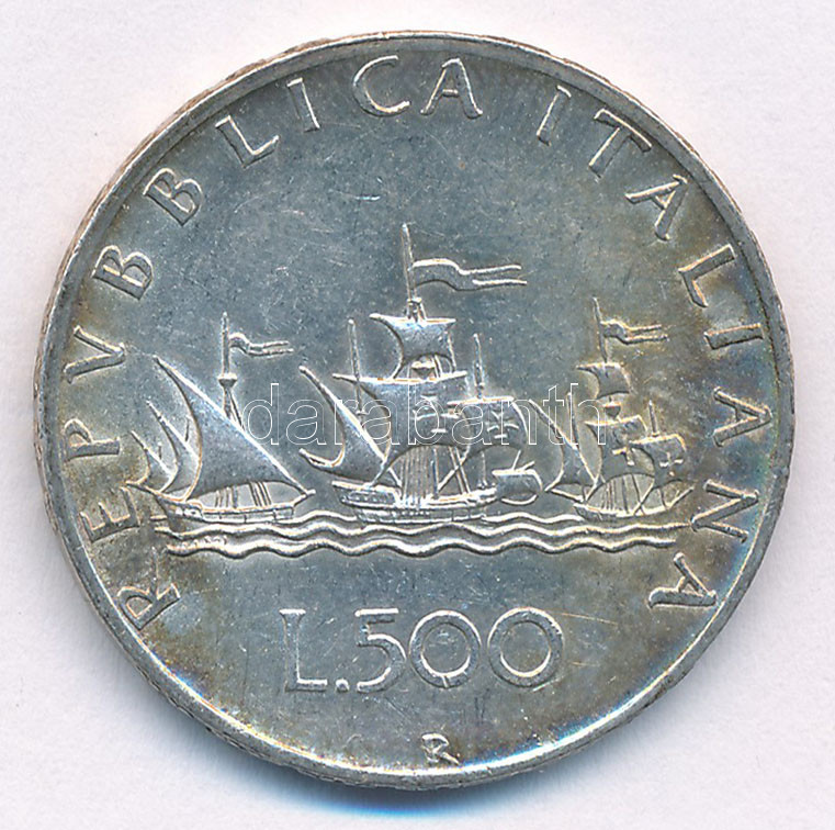 Leírás: Olaszország 1958R 500L Ag "Kolumbusz hajói" T:2 patina Italy 1958R 500 Lire Ag "Columbus' Ships" C:XF patina