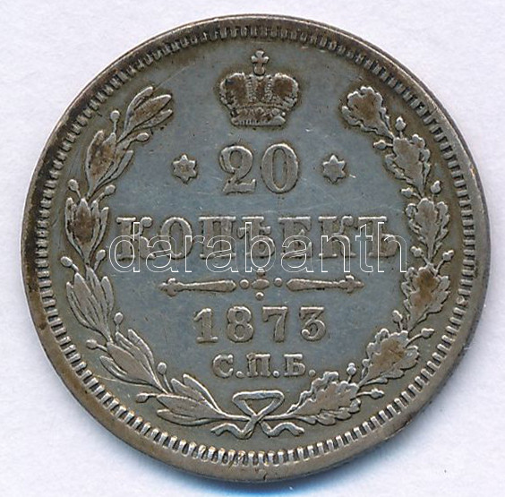 Russian Empire 1873. 20 Kopecks Ag ... https://www.darabanth.com/hu/472-Gyorsarveres/472.0/Numizmatika/Kulfoldi-fem-es-ezustpenzek~2000017/Orosz-Birodalom-1873-20k-Ag-TVF-Russian-Empire-1873-20-Kopecks-Ag-CVF--Krause-Y2322a1~II3195757