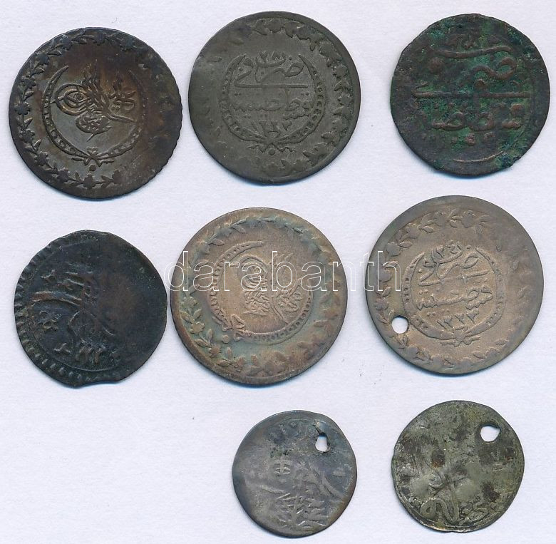 Oszmán Birodalom 8db-os billon és Cu érmetétel T:VF,F patina, közte átfúrtak Ottoman Empire 8pcs billon and Cu coin lot C:VF,F patina, within holed pieces