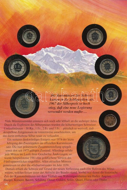Leírás: Svájc 1979-1995. 1r - 5Fr (8xklf) forgalmi összeállítás karton díszlapon T:UNC,AU patina