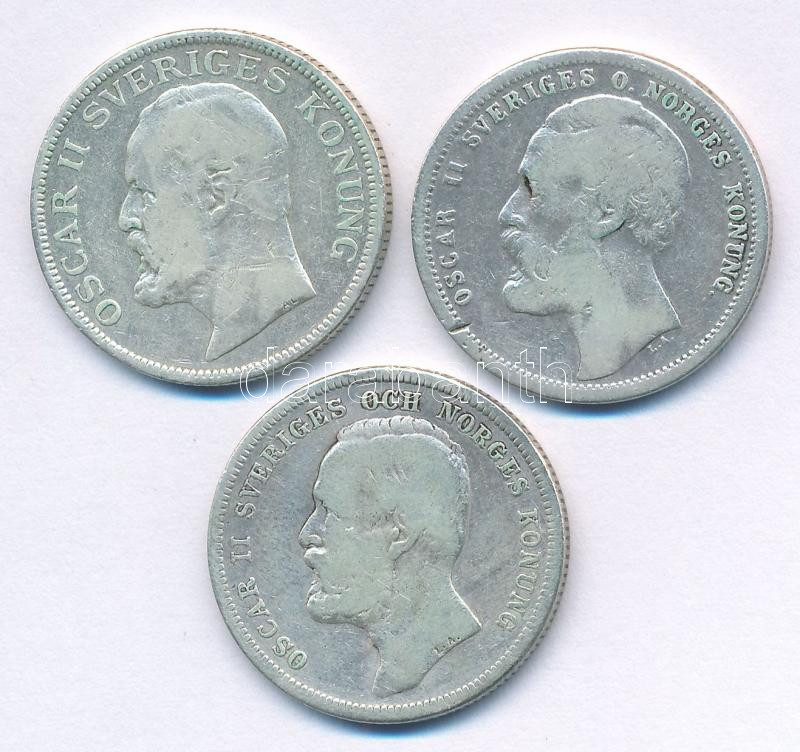 Leírás: Svédország 1875-1907. 1Kr Ag "II. Oszkár" (3xklf) T:F