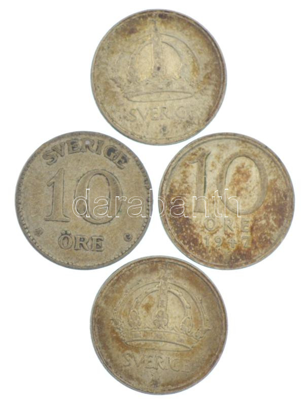 Leírás: Svédország 1934-1947. 10ö Ag (4xklf) T:AU-VF patina Sweden 1934-1947. 10 Öre Ag (4xdiff) C:AU-VF patina