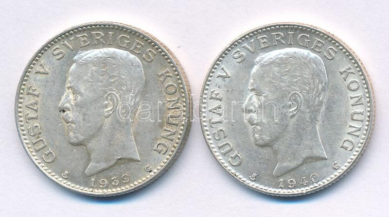Leírás: Svédország 1939-1940G 1Kr Ag "V. Gusztáv" (2x) T:XF Sweden 1939-1940G 1 Krona Ag "Gustaf V" (2x) C:XF Krause KM#786