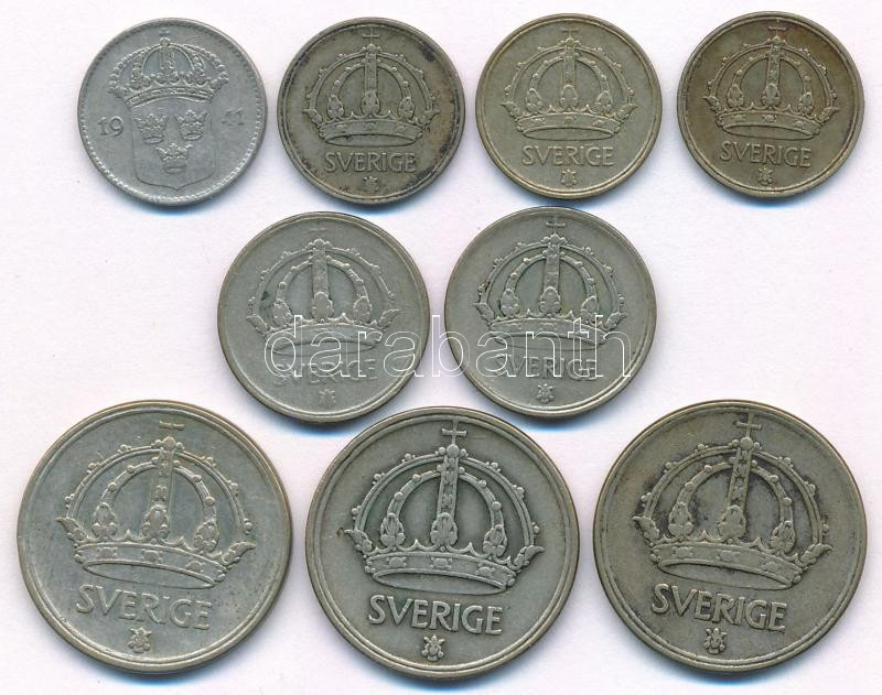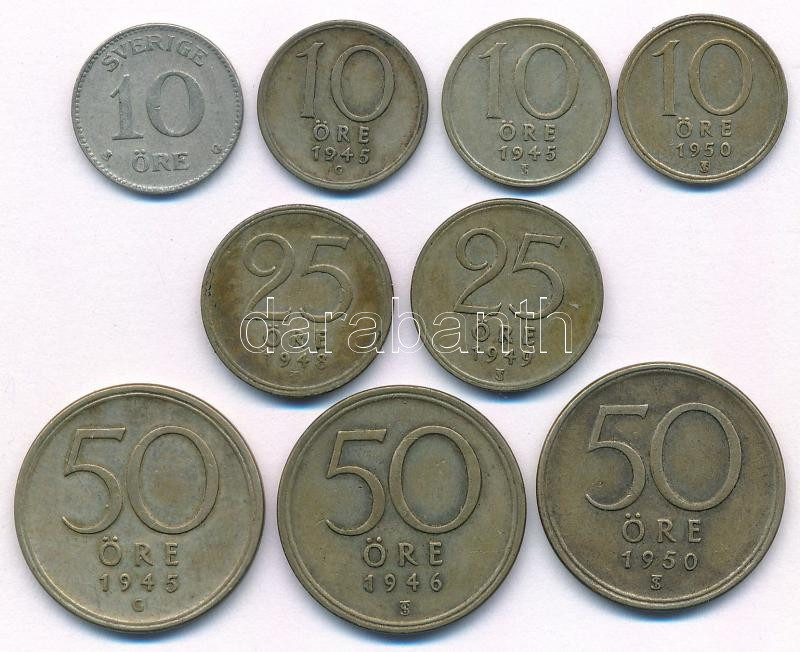 Svédország 1941. 10ö Ag + 1945. 10ö Ag (2xklf) "TS" és "G" verdejelek + 1945G 50ö Ag + 1948-1949. 25ö Ag (2xklf) + 1950. 10ö Ag + 1946TS-1950TS 50ö Ag (2xklf) T:XF,VF patina Sweden 1941. 10 Öre Ag + 1945. 10 Öre Ag (2xdiff) "TS" and "G" mint marks + 1945G 50 Öre Ag + 1948-1949. 25 Öre Ag (2xdiff) + 1950. 10 Öre Ag + 1946TS-1950TS 50 Öre Ag (2xdiff) C:XF,VF patina