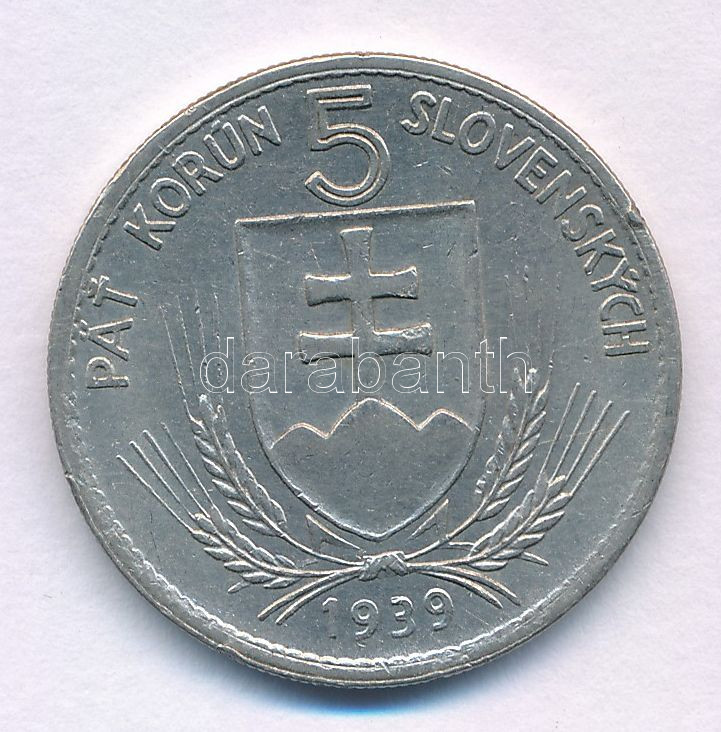 Slovakia 193... https://www.darabanth.com/hu/472-Gyorsarveres/472.0/Numizmatika/Kulfoldi-fem-es-ezustpenzek~2000017/Szlovakia-1939-5K-Ni-Andrej-Hlinka-TXF-ph--Slovakia-1939-5-Korun-Ni-Andrej-Hlinka-CXF-edge~II3165434