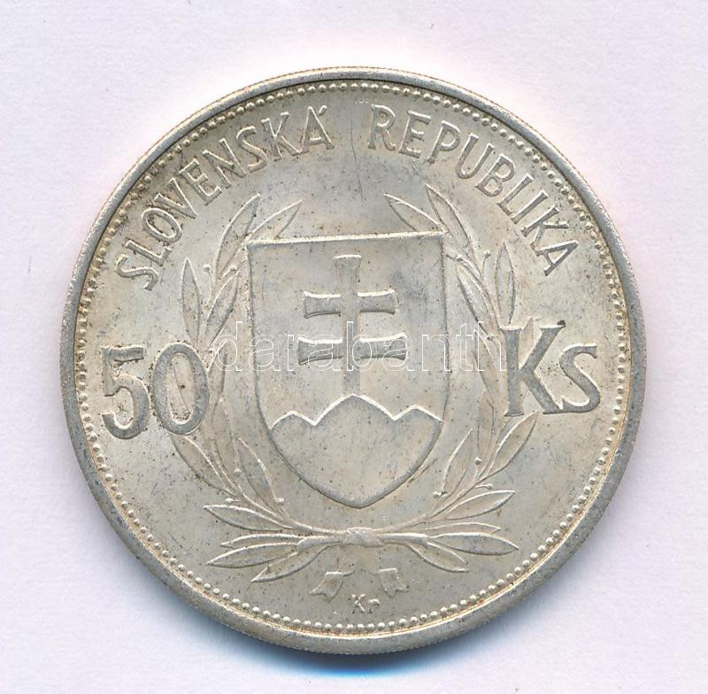 Leírás: Szlovákia 1944. 50K Ag "Függetlenség 5. évfordulója" T:XF karc, patina