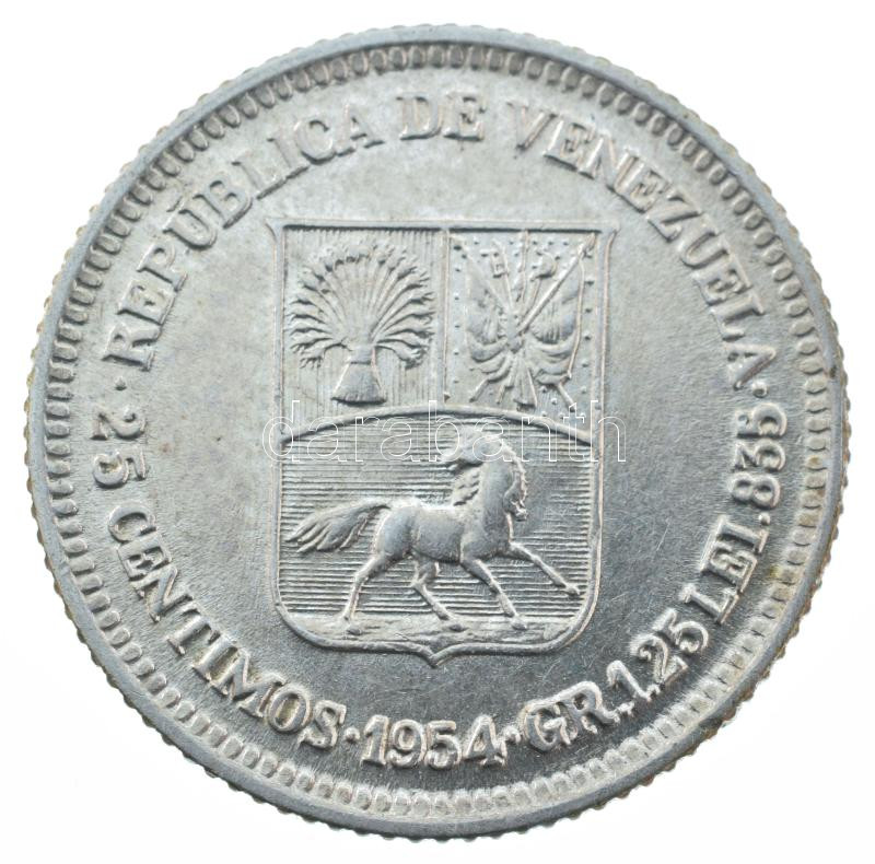 Krau... https://www.darabanth.com/hu/472-Gyorsarveres/472.0/Numizmatika/Kulfoldi-fem-es-ezustpenzek~2000017/Venezuela-1954-25c-Ag-TAU-Venezuela-1954-25-Centimos-Ag-CAU-Krause-Y2335~II3063536