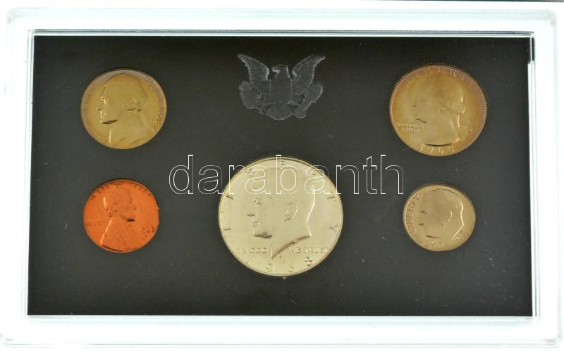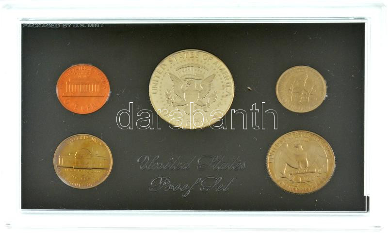 Amerikai Egyesült Államok 1968S 1c-1/2$ Cu-Ni, bronz (5xklf) forgalmi sor eredeti tokban T:PP a külső papírtok viseltes USA 1968S 1 Cent - 1/2 Dollar Cu-Ni, bronze (5xdiff) coin set in original case C:PP worn paper case