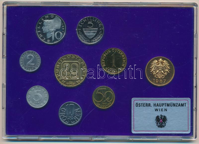 Ausztria 1987. 2gr-20Sch (8xklf) forgalmi sor + Bécsi verde zseton, műanyag tokban T:PP