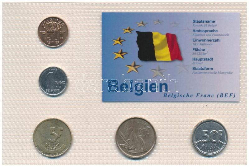 Belgium 1982-1998. 50c-50Fr (5xklf) "Belgium utolsó nemzeti pénzei" vákuumcsomagolt forgalmi összeállítás, német nyelvű tanúsítvánnyal T:UNC-VF