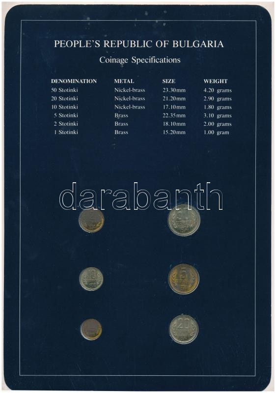 Bulgária 1974. 1s-50s (6xklf), "Coin Sets of All Nations" fo... https://www.darabanth.com/hu/472-Gyorsarveres/472.0/Numizmatika/Kulfoldi-forgalmi-sorok~2000018/Bulgaria-1974-1s-50s-6xklf-Coin-Sets-of-All-Nations-forgalmi-szett-felbelyegzett-kartonlapon~II3177190