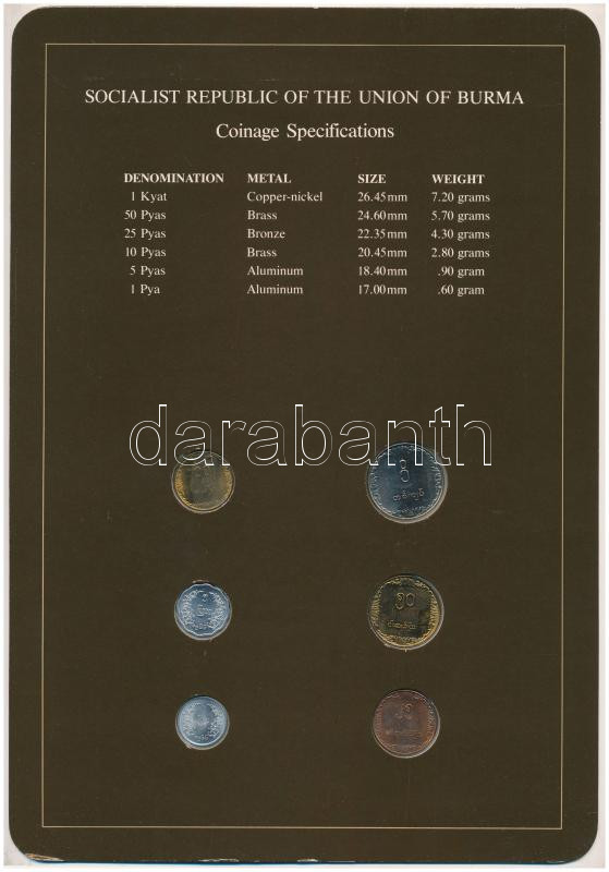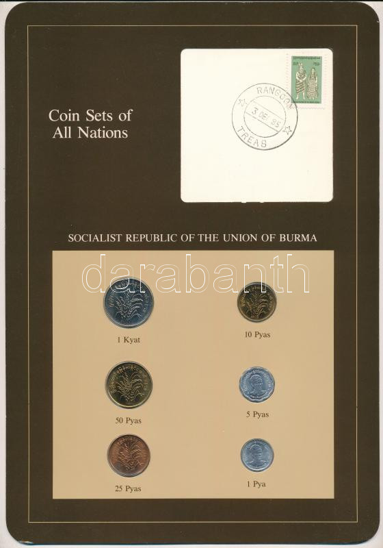 Burma ~1966-1987. 1p-1K (6xklf), "Coin Sets of All Nations" ... https://www.darabanth.com/hu/472-Gyorsarveres/472.0/Numizmatika/Kulfoldi-forgalmi-sorok~2000018/Burma-7E1966-1987-1p-1K-6xklf-Coin-Sets-of-All-Nations-forgalmi-szett-felbelyegzett-kartonlapo~II3177189