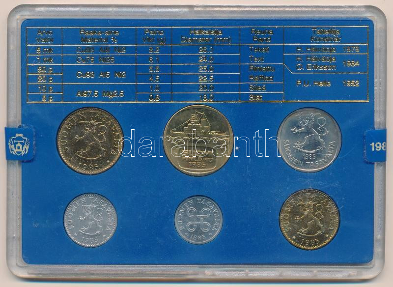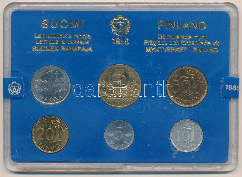 Fin... https://www.darabanth.com/hu/472-Gyorsarveres/472.0/Numizmatika/Kulfoldi-forgalmi-sorok~2000018/Finnorszag-1985-5p-5M-6xklf-forgalmi-sor-plasztik-tokban-TUNC-Finland-1985-5-Pennia-5-Markk~II3180515
