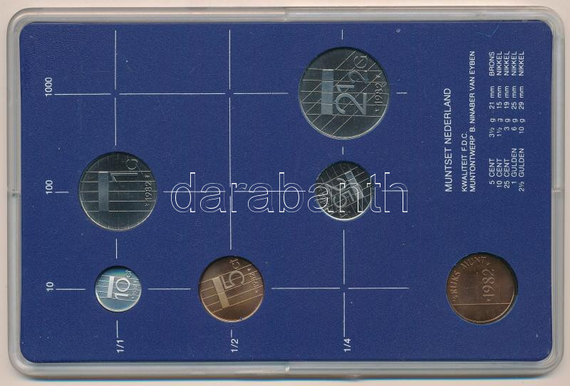 Hollandia 1982. 5c-2 1/2G (5xklf) forgalmi sor műanyag tokban, pénzverdei zsetonnal T:UNC a tok egyik sarka sérült