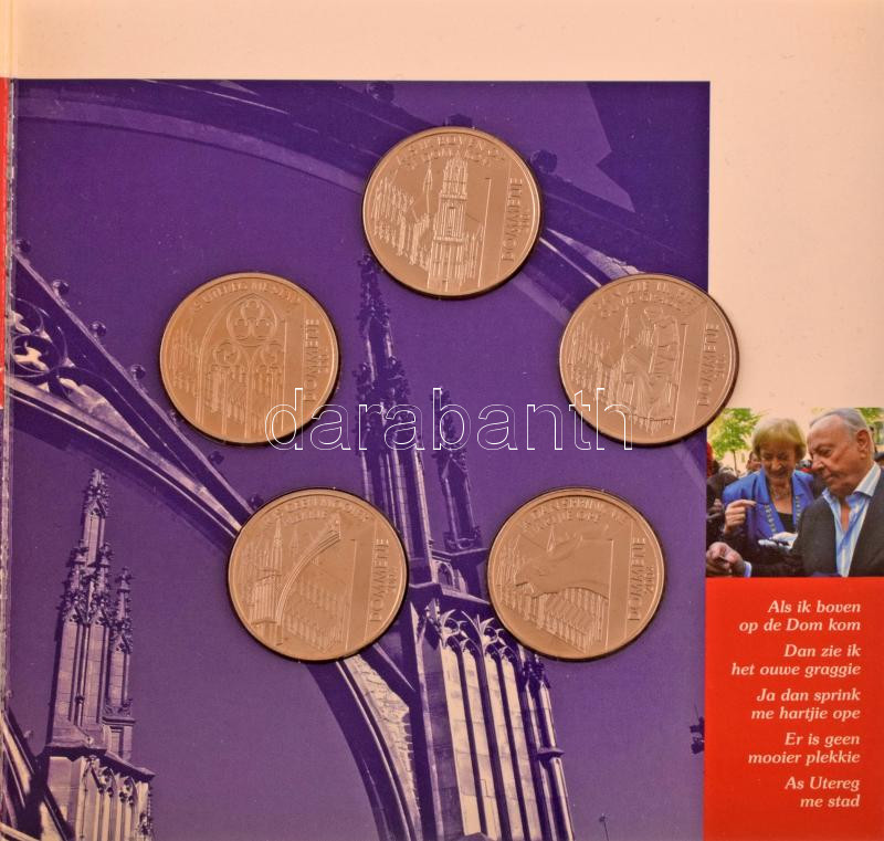 Hollandia 2014. 1D Cu-Ni "750 éves az utrechti katedrális" 5xklf emlékérem dísztokos szettben, tanúsítvánnyal T:UNC