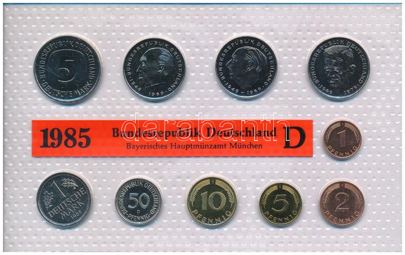 GFR 1985D 1 Pfennig - 5 Mark (10xdiff) coin set in foil packaging, loose coins C:UNC