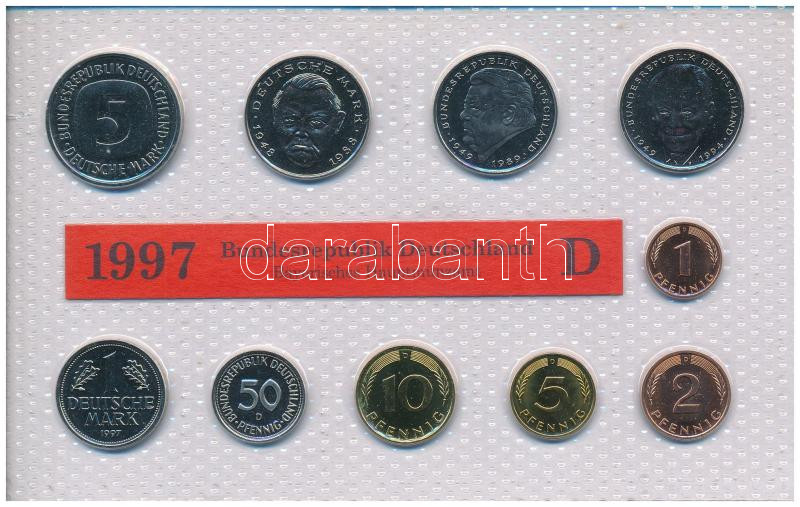 GFR 1997D... https://www.darabanth.com/hu/472-Gyorsarveres/472.0/Numizmatika/Kulfoldi-forgalmi-sorok~2000018/NSZK-1997D-1pf-5M-10xklf-forgalmi-sor-folia-tokban-TUNC--GFR-1997D-1-Pfennig-5-Mark-10xdiff~II3139997