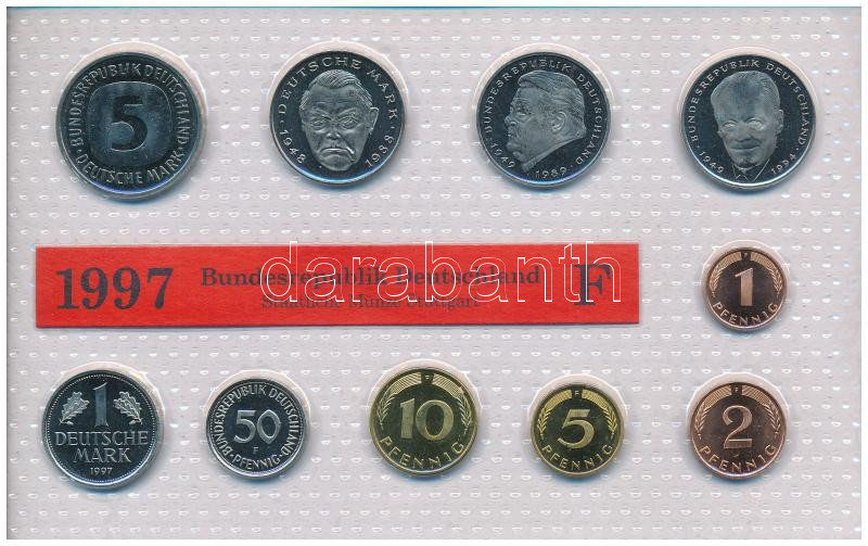 GFR 1997F... https://www.darabanth.com/hu/472-Gyorsarveres/472.0/Numizmatika/Kulfoldi-forgalmi-sorok~2000018/NSZK-1997F-1pf-5M-10xklf-forgalmi-sor-folia-tokban-TUNC--GFR-1997F-1-Pfennig-5-Mark-10xdiff~II3139998