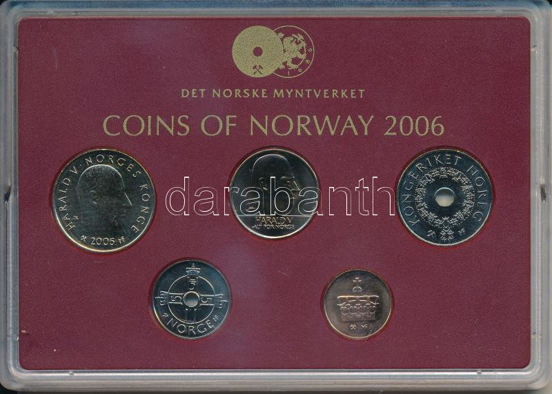 Norvégia 2006. 50ö-20K (5xklf) forgalmi sor műanyag tokban T:UNC kis patina Norway 2006. 50 Öre - 20 Kroner (5xdiff) coin set in original plastic case C:UNC small patina