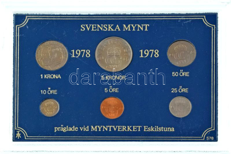 Swe... https://www.darabanth.com/hu/472-Gyorsarveres/472.0/Numizmatika/Kulfoldi-forgalmi-sorok~2000018/Svedorszag-1978-5o-5K-6xklf-forgalmi-sor-muanyag-tokban-TUNC--Sweden-1978-5-Ore-5-Krono~II3180305