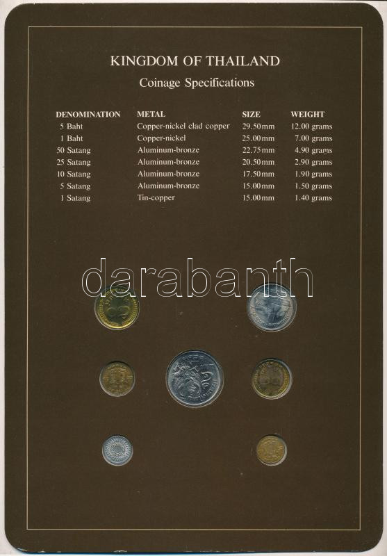 Leírás: Thaiföld ~1975-1980. 1s-5B (6xklf), "Coin Sets of All Nations" forgalmi szett felbélyegzett kartonlapon T:UNC patina