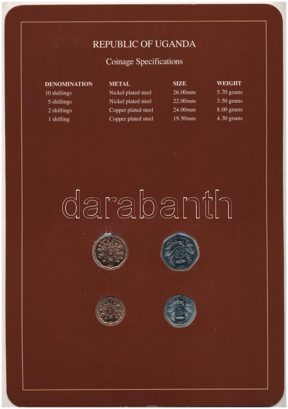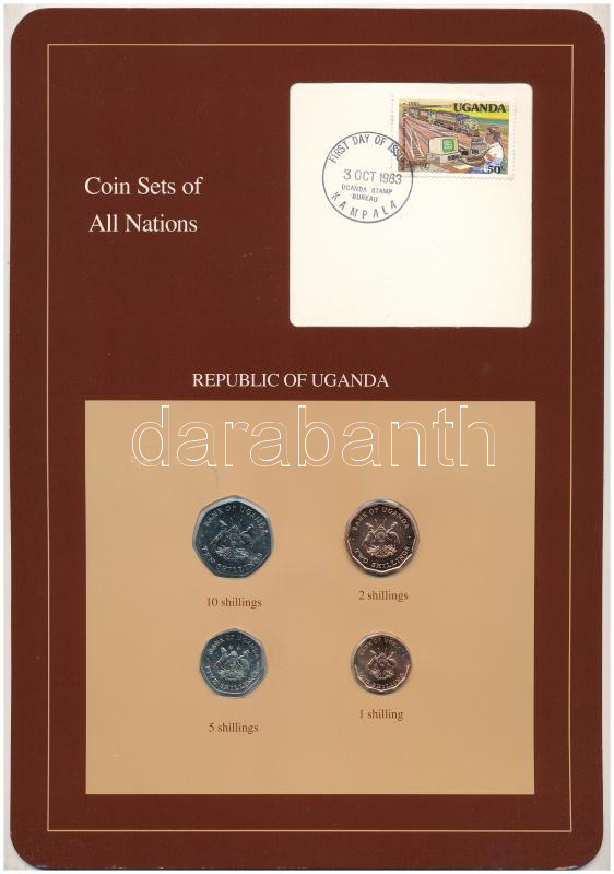Uganda 1987. 1Sh - 10Sh (4xklf), "Coin Sets of All Nations" ... https://www.darabanth.com/hu/472-Gyorsarveres/472.0/Numizmatika/Kulfoldi-forgalmi-sorok~2000018/Uganda-1987-1Sh-10Sh-4xklf-Coin-Sets-of-All-Nations-forgalmi-szett-felbelyegzett-kartonlapo~II3177183