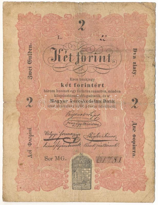 Leírás: 1848. 2Ft "Kossuth bankó" T:VG Adamo G105