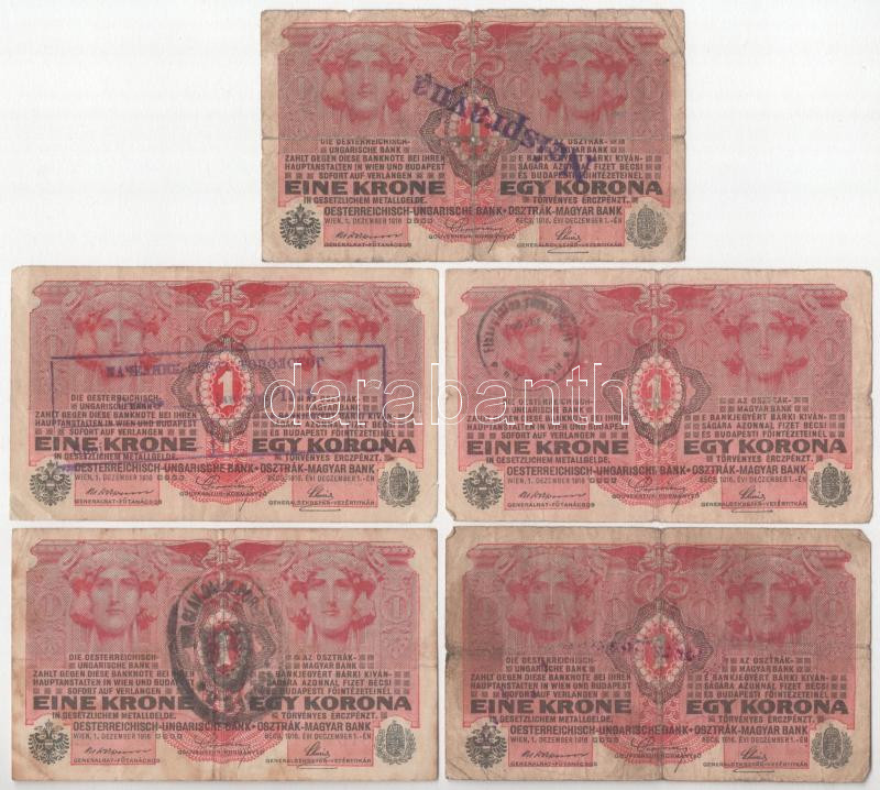 Leírás: 1916. 1K (5x) különböző hamis felülbélyegzésekkel T:VG