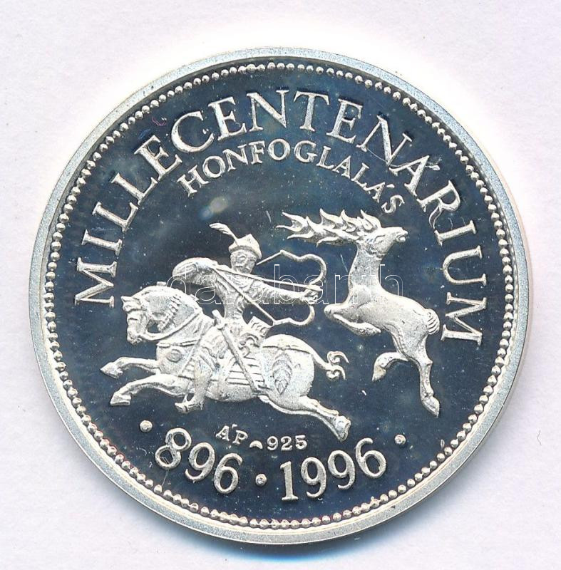 Leírás: Csóka Zsuzsanna (1962-) 1996. "Millecentenárium Honfoglalás 896-1996" jelzett Ag emlékérem (11,90g/0.925/35mm) T:PP folt