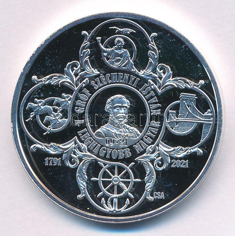 Csontos Attila 2001. "Gróf Széchenyi István - A legnagyobb magyar / Ha isten velünk, ki ellenünk?" peremen jelzett, sorszámozott Ag emlékérem, "308/700" sorszámmal (31,28g/0.999/39mm) T:PP