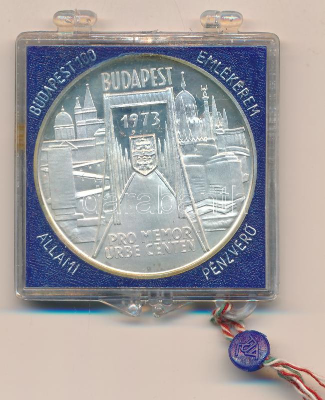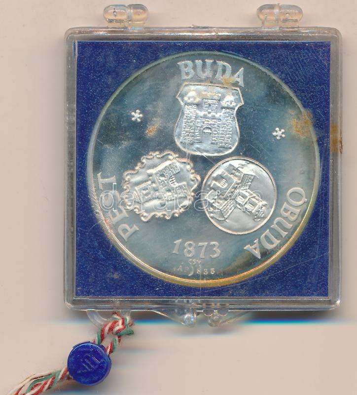 Leírás: Csucs Viktória (1934-1993) 1973. "Pest - Buda - Óbuda - 1873 / Budapest 1973 - Pro memor urbe centen" jelzett Ag emlékérem plombált ÁPV tokban (~25g/0.835/42,5mm) T:UNC (eredetileg PP) patina