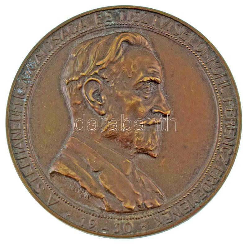 Sidló Ferenc (1882-1953) 1929. "A Stephaneum igazgatósága és tisztviselői - Kohl Ferencz érdemeinek - 19_30" egyoldalas bronz emlékérem (65mm) T:AU