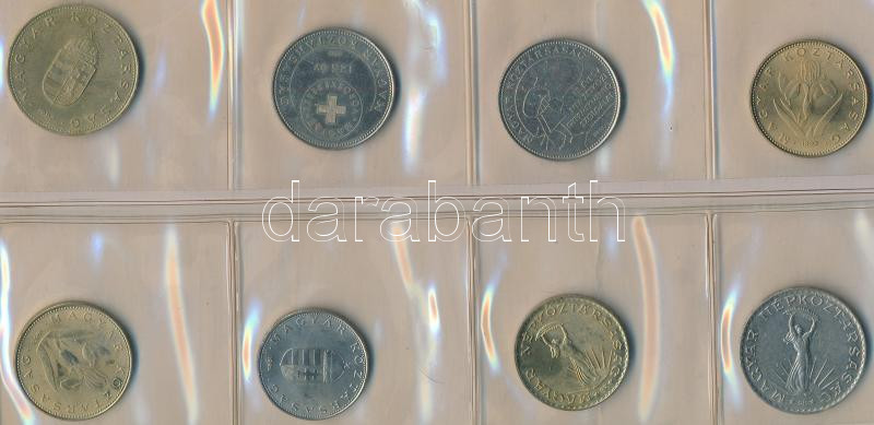 Leírás: 1973-2006. 8db-os Forint érmetétel, közte 1993. 10Ft + 20Ft (2db) + 100Ft, illetve 2xklf 50Ft forgalmi emlékpénz T:AU,XF