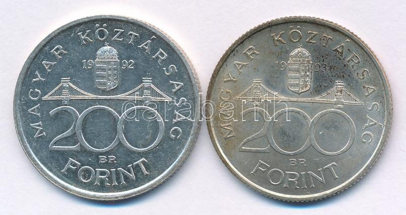 Leírás: 1992-1993. 200Ft "MNB" Ag (2xklf) T:AU patina Adamo F13