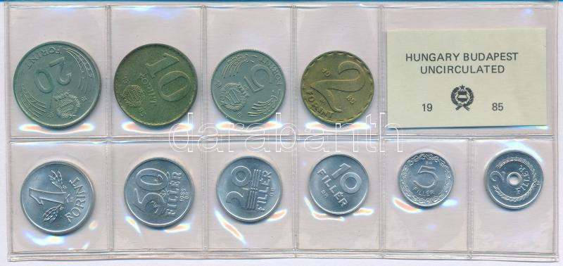 Leírás: 1985. 2f-20Ft (10xklf) érmés forgalmi sor fóliatokban T:UNC patina