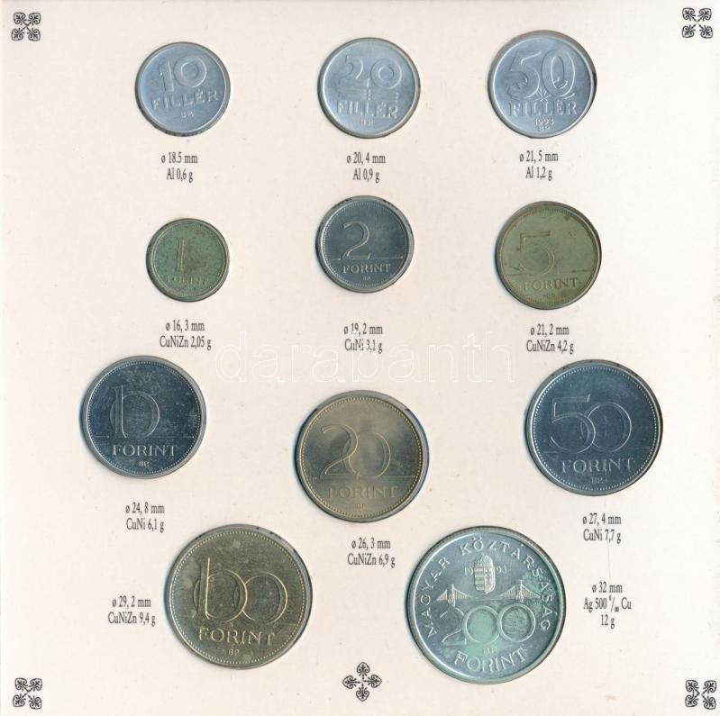 1993. 10f-200Ft (11xklf) forgalmi sor, háromlapos verzió, "Magyar... https://www.darabanth.com/hu/472-Gyorsarveres/472.0/Numizmatika/Magyar-forgalmi-sorok~2000010/1993-10f-200Ft-11xklf-forgalmi-sor-haromlapos-verzio-Magyarorszag-penzermei-karton-dis~II3126374