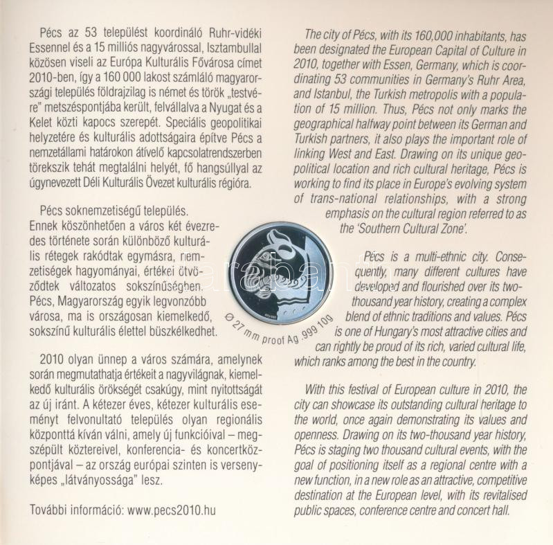 Leírás: 2010. 5Ft-200Ft (6xklf) forgalmi sor szettben + "Pécs 2010 - Európa Kulturális Fővárosa " Ag emlékérem (10g/0.999/27mm) T:PP patina Adamo FO44.4
