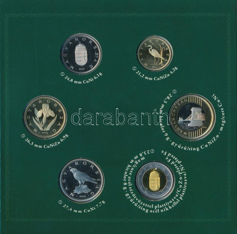 Leírás: 2012. 5Ft-200Ft (6xklf) forgalmi sor dísztokban "Magyarország" körirattal T:PP