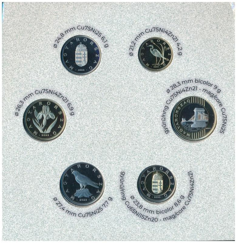 2023. 5Ft-200Ft (6xklf) + 50Ft Cu-Ni "75 éves az Országos Mentőszolgálat" + 100Ft bicolor "175 éves a Magyar Honvédség" + 2023. 200Ft bicolor "Petőfi 200", "Magyarország pénzérméi" forgalmi sor szettben T:PP sérült külső borító