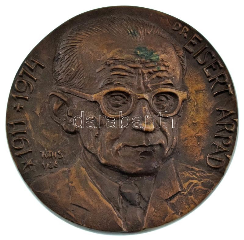 Tóth Sándor (1933-2019) 1986. "Dr. Eisert Árpád 1911-1974 / Születésének 75. évfordulóján tanítványai és munkatársai '986" bronz emlékérem (121mm) T:UNC patina