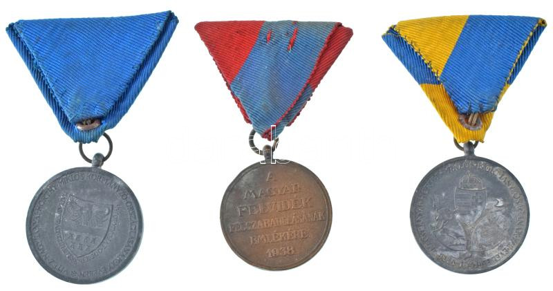 1938. "Felvidéki Emlékérem - II. Rákóczi Ferenc" bronz emlékérem eredeti mellszalaggal + 1940. "Erdélyi részek felszabadulásának emlékére" Zn emlékérem eredeti mellszalaggal. Szign.:BERÁN + 1941. "Délvidéki Emlékérem" Zn emlékérem modern mellszalaggal. Szign.: BERÁN L. T:AU,XF patina, kis oxidácó / Hungary 1938. "Commemorative Medal for the Liberation of Upper Hungary" bronze medal with original ribbon + 1940. "Commemorative Medal for the Liberation of Transylvania" Zn medal with original ribbon. Sign.:BERÁN L. + 1941. "Commemorative Medal for the Return of Southern Hungary" Zn medal with modern ribbon. Sign.:BERÁN L. C:AU,XF patina, small oxidation